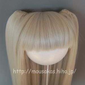 9-10インチの耐熱素材のドール用ウイッグ プラチナ色の2Wayストレートです。