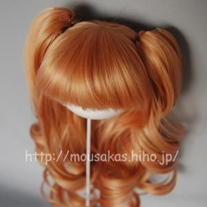 9-10インチの耐熱素材のドール用ウイッグ ピーチブラウン色の2Wayふわゆるカールです。