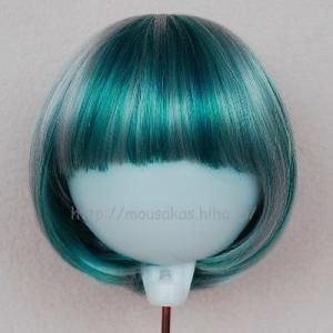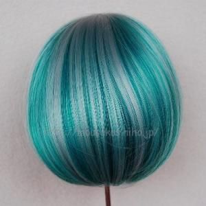 11-12インチサイズのドール用ウイッグ メッシュで変化をつけたプラチナアイスグリーンのマッシュボブです。
